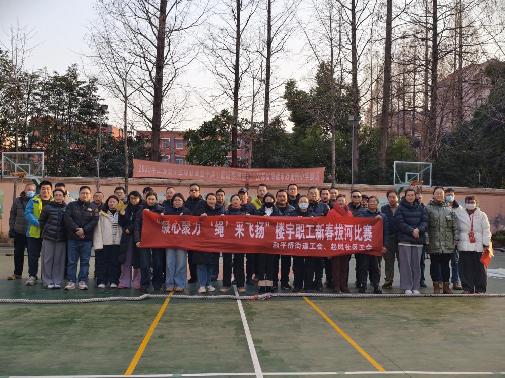 中国江苏网讯 新春渐近,年味渐浓,楼宇间的烟火气与凝聚力同步升温。为深化楼宇党建引领,丰富职工业余文化生活,近日,和平桥街道工会联合会在跃龙桥小学操场精心举办“凝心聚力‘绳’采飞扬”楼宇职工新春竞技活动,50余名来自辖区各楼宇企业的职工代表齐聚赛场,以绳为桥、以赛聚心,在协作拼搏中凝聚发展合力,为辖区楼宇治理注入鲜活活力。