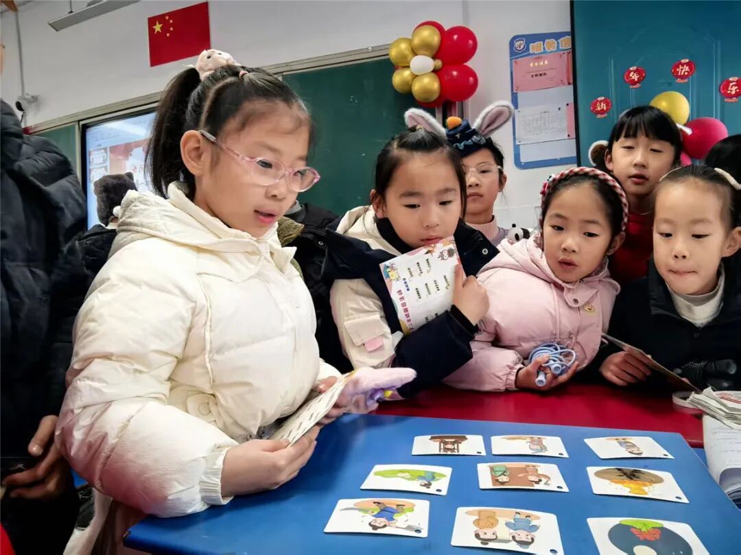 “小狐狸妙语花园”里闯关氛围热烈。“诗词迎祥瑞”环节,孩子们从容应对。根据老师提供的古诗题目,脆生生的吟诵声此起彼伏。不少同学还主动挑战班本化古文背诵。孩子们将诗词的韵律之美展现得淋漓尽致。“新春童言绘”环节,面对大屏幕上的图画,孩子们的想象力肆意驰骋,他们用生动的语言,编织出一个个充满童趣的小故事。“成语闹新春”成了挑战热点,由图想到成语,清脆的童声传递了语言的魅力。过关与挑战相结合。