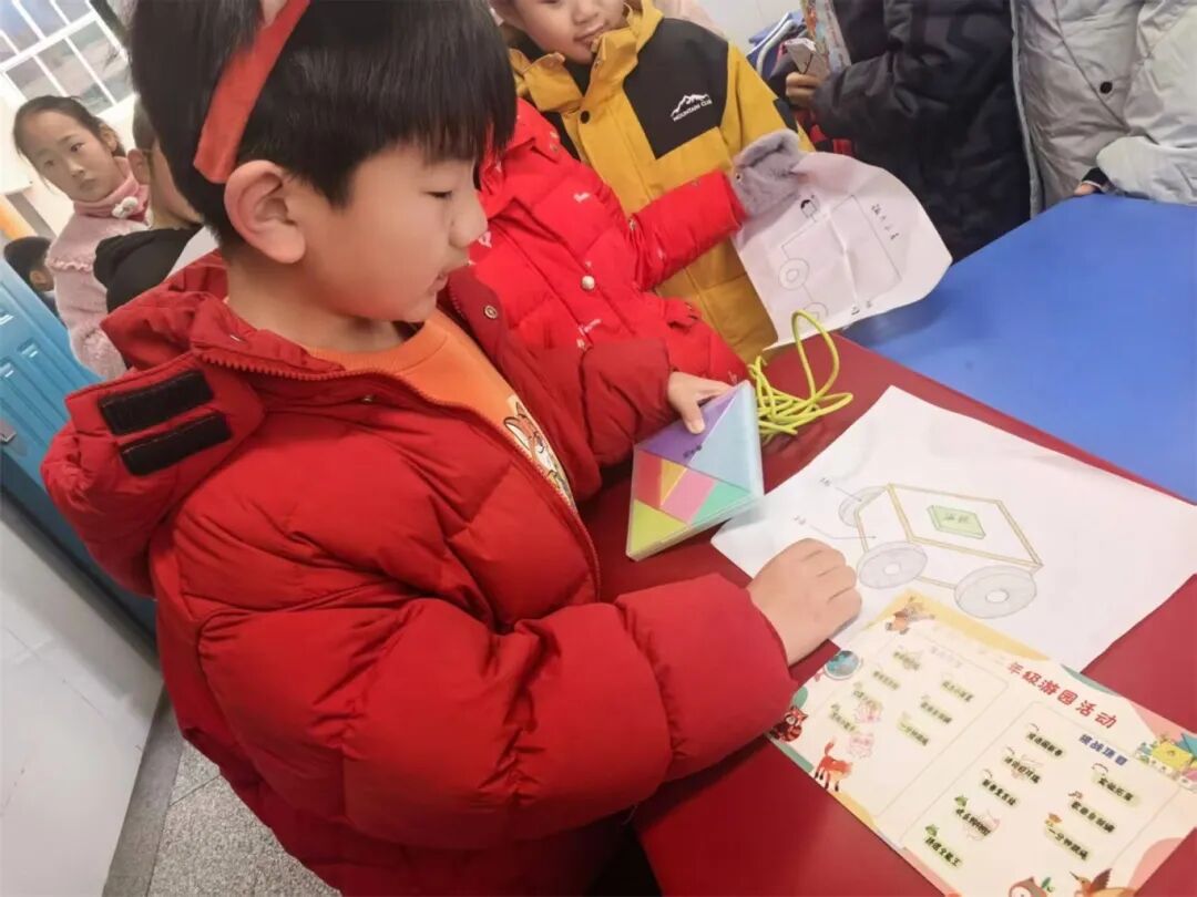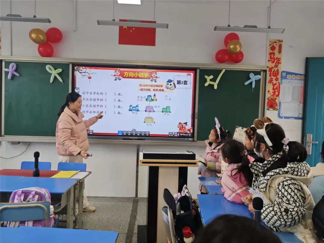 教室变成“猫头鹰智慧坊”,数学闯关趣味十足。“口算小达人”环节,孩子们快速反应、精准计算,在随机抽取的试题中轻松过关;在“方向小能手”考验下,他们凭借空间认知能力,在1分钟内准确应答方位问题。挑战区更是精彩,“欢乐购物街”模拟真实消费场景,孩子们在30秒内快速核算金额,学以致用;“拼摆全能王”将数学与美术融合,大家手持自制七巧板,按要求在1分钟内完成图形拼搭,逻辑与审美双双在线。