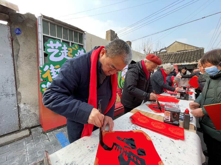 中国江苏网讯 春节将至,年味渐浓。为弘扬中华优秀传统文化,深化党盟合作,服务基层群众,2月1日下午,一场温馨祥和的新春送福活动在千年寺街举行。本次活动由和平桥街道党工委与民盟南通市文化总支部联合举办,旨在以文化服务民生,以笔墨凝聚共识。