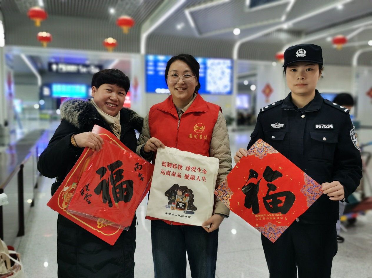 平潮派出所联合平潮司法所、南通西站派出所等部门在现场开展反诈、禁毒、交通安全、非法集资等系列宣传活动。