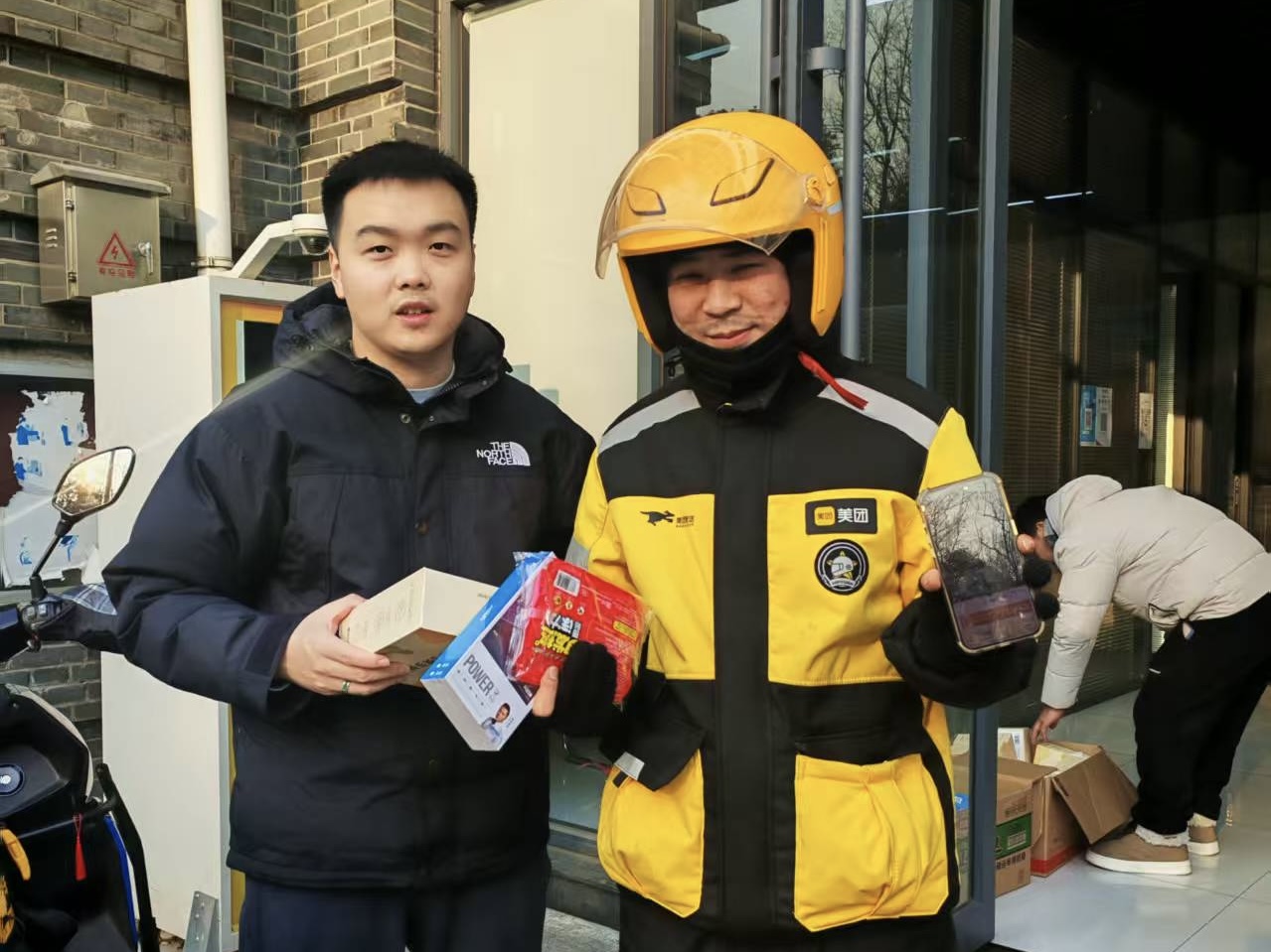 活动现场,工作人员提前精心准备了贴合骑手实际需要的实用慰问品,涵盖充电宝、暖宝宝、发热护膝等多类物资,精准对接骑手在户外配送中面临的保暖与设备续航双重需求,切实解决冬日工作中的实际困难。