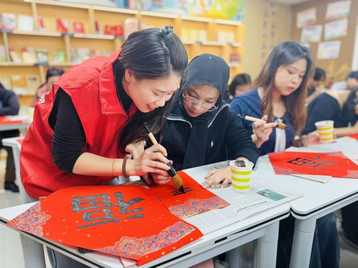 中国江苏网讯 为营造文明祥和、团结温馨的节日氛围,近日,秦灶街道桥东村社区联合江苏商贸职业学院继续教育学院和崇川区匠心公益服务中心,共同组织开展了“我们的节日·春节”主题文化活动。本次活动以“骐骥驰春承文脉 中外同心庆佳节”为主题,邀请社区志愿者、居民以及江苏商贸职业学院的外籍留学生共同参与,在传统与现代的交融中感受中华传统文化的深厚魅力。