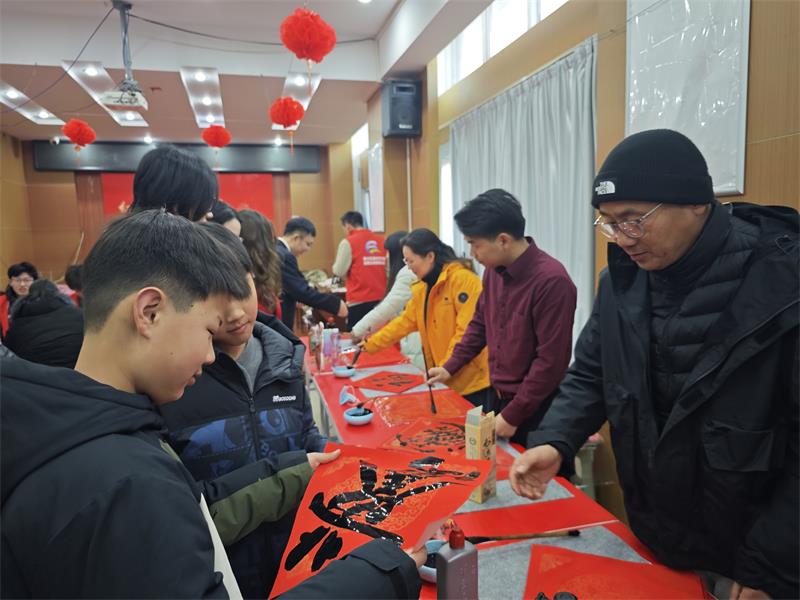社区党群服务站内张灯结彩、暖意融融。特色摊位区人气爆棚。糖画非遗代表性传承人以铜勺为笔、糖液为墨,转瞬勾勒出奔腾骏马等吉祥图案,大家踮脚围观、争相品尝,甜蜜滋味勾起童年记忆。红包拓印摊位前,志愿者耐心指导居民亲手拓印吉祥纹样,制作专属新春红包;五福临门摊位上,五位书法家挥毫泼墨,将美好祝福传递给每一位居民。
