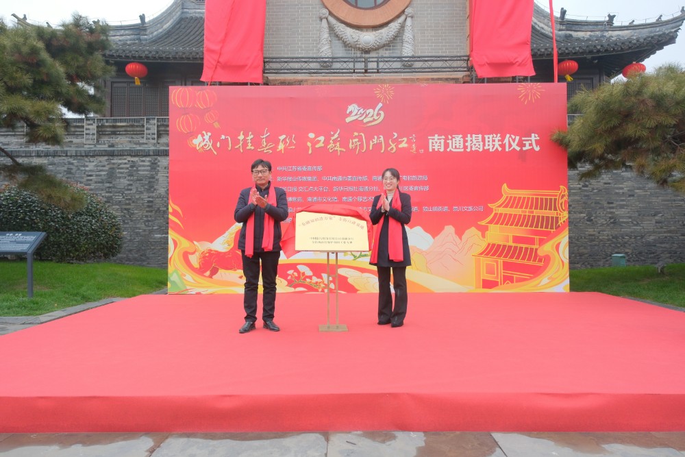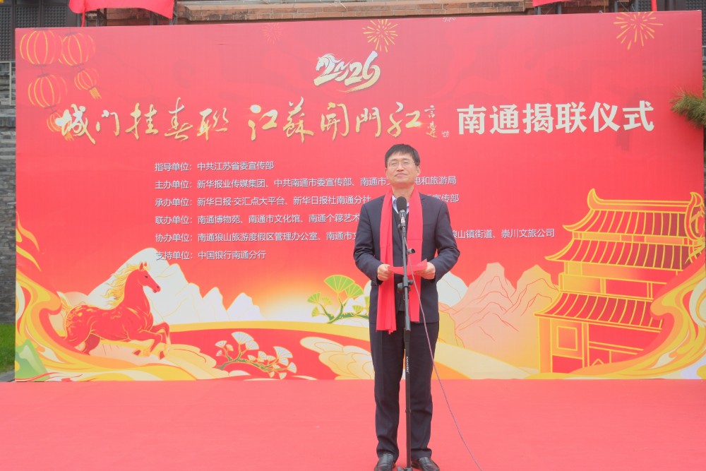 “银蛇摆尾辞旧岁,金马奋蹄跃新程,值此新春佳节来临之际,以‘城门挂春联’这一承载传统、点亮城市的文化盛事,为南通送上新春祝福,为城市注入年味与奋进力量。”南通市委宣传部一级调研员周锦南在致辞中表示,2026年是“十五五”规划开局之年,更是南通凝聚万众之心、激发创新活力的关键之年,南通将以昂扬姿态抢抓机遇、勇毅前行,以实干笃行攻坚克难、争先创优,向着“跨江融合走在前、沿海发展当龙头、万亿城市争进位”的宏伟目标铿锵迈进。