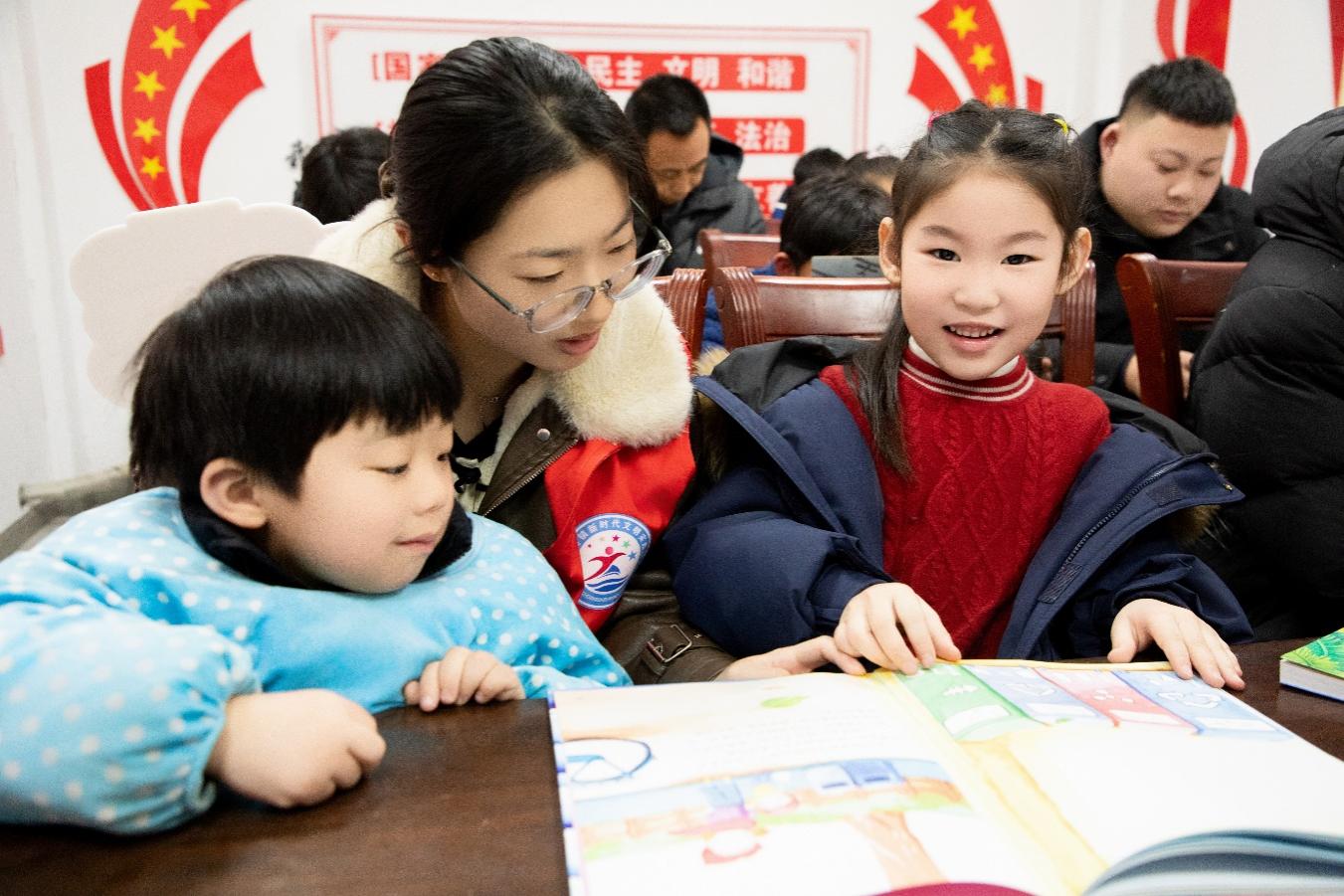 针对新业态从业人员工作繁忙、亲子陪伴时间有限的实际,姜川村特设亲子阅读环节,为这类家庭打造专属的高质量陪伴时光。活动现场,大学生志愿者化身“阅读领航员”,精选家风家训、儿童安全保护等主题优质绘本,现场分享亲子共读技巧与互动妙招。