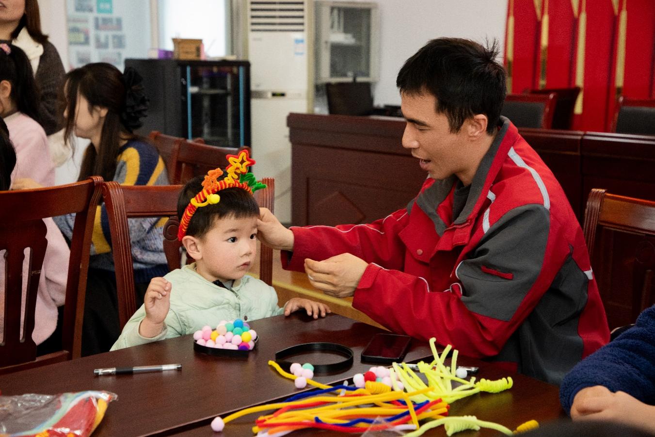 “接下来,让我们用彩色扭扭棒,做一款专属的新春发饰吧!”志愿者的话音刚落,现场便响起孩子们的欢呼雀跃。活动桌上,彩色扭扭棒、萌趣毛球、手工胶水等材料一应俱全,孩子们尽情发挥想象力,将扭扭棒弯折、缠绕、拼接,打造独一无二的发箍骨架,更将“福”“春”、五彩烟花等新春元素,与“护苗”“绿书签”等文明标识巧妙融入设计。