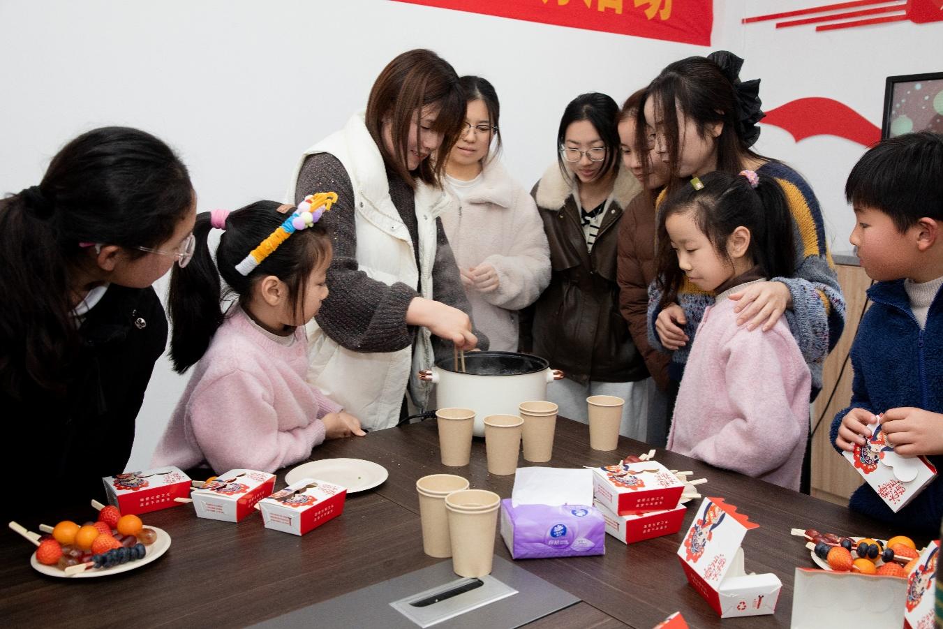 “冰糖葫芦,酸甜可口的冰糖葫芦哟!”一声叫卖声,将活动氛围推向高潮,冰糖葫芦DIY也成为现场最受追捧的趣味体验。新鲜的草莓、圆润的葡萄、金黄的金桔、酸甜的蓝莓整齐摆放,熬煮好的糖浆色泽透亮、香甜四溢。