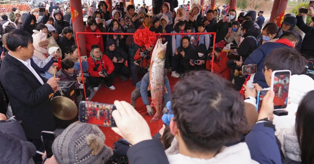 在“里下河明珠”海安白甸镇,村晚与冬捕完美交融。“起网喽!”的号子声中,万鳞腾跃,鸬鹚捕鱼的古韵场景再现。岸边热气升腾,大锅里的鱼汤正“咕嘟”翻滚,鲜香随着炊烟飘散,勾动着味蕾与乡情。“年度鱼王”竞拍点燃热情,醇厚的水乡年味令人沉醉。