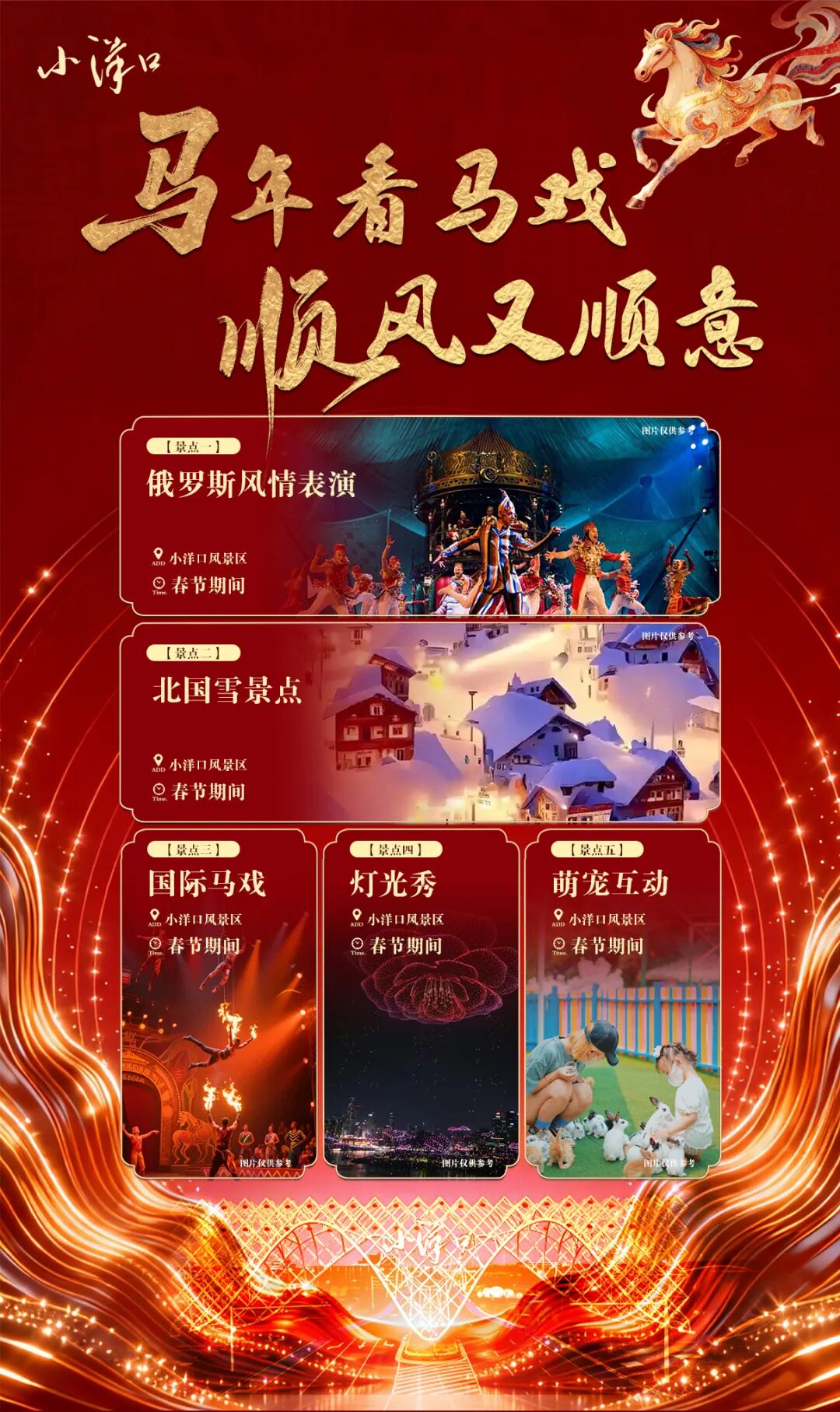 奇趣萌宠、国际马戏、梦幻灯光秀、特色集市与儿童游乐惊喜集结,初一、初五更添浪漫烟花秀。