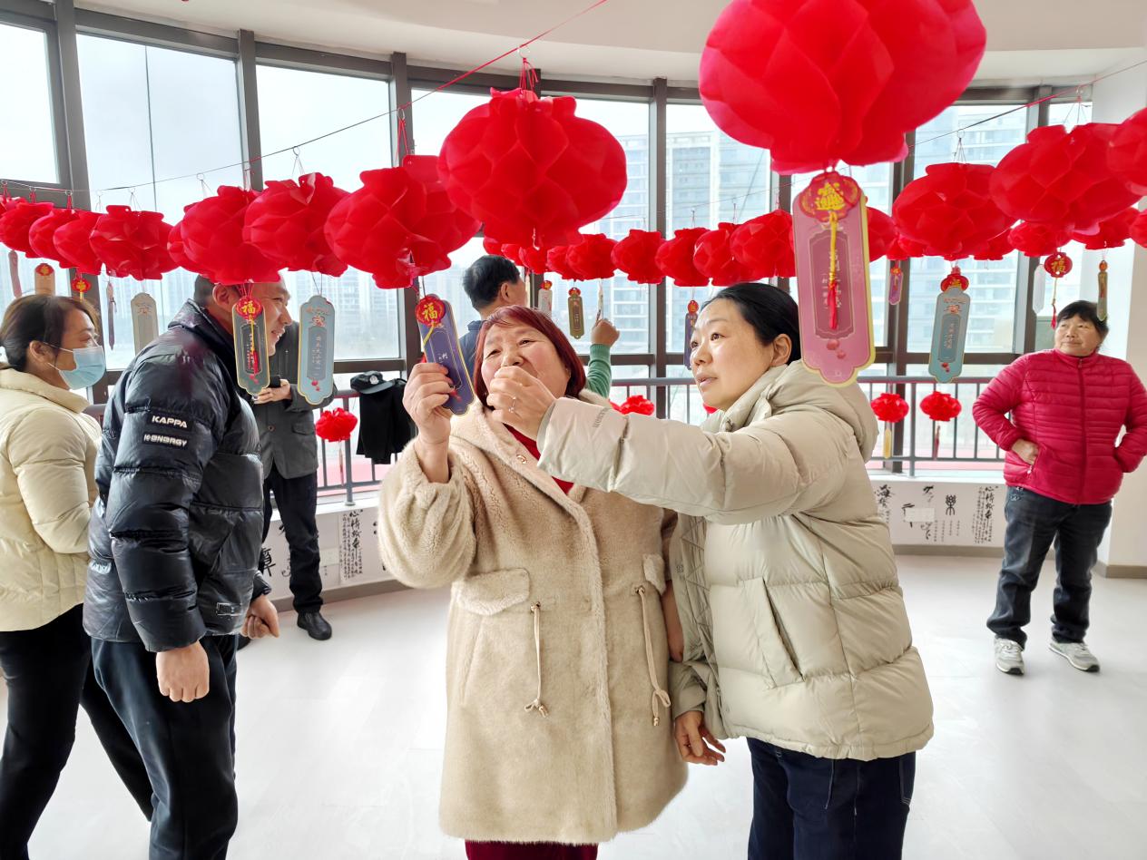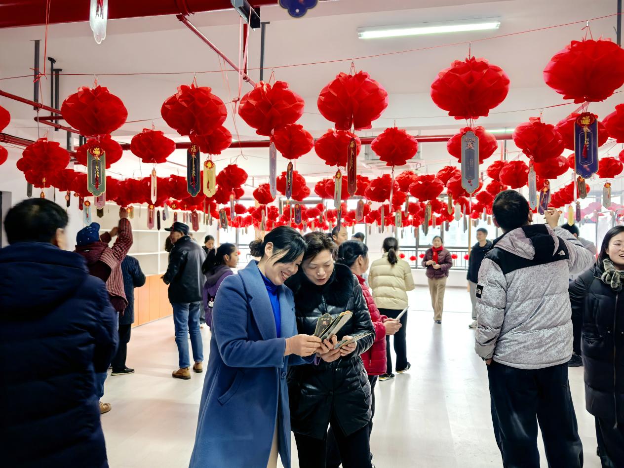 灯谜藏众智,笑语庆元宵。猜灯谜环节将活动推向高潮。现场,一串串红灯笼高高挂起,五彩灯谜纸条随风飘动,散发着淡淡墨香。居民们围在灯旁,或凝神细读,或轻声探讨,眼神满是思索与好奇。本次灯谜类型多样,有字谜、成语、地名等,难度不一。其中“身自端方……有言必应”这道打一文房用品的灯谜引发众人竞猜,当有人猜出是“砚台”时,周围响起掌声与喝彩。大家在猜谜过程中开动脑筋、增长知识,在欢声笑语中感受传统元宵文化的独特魅力。