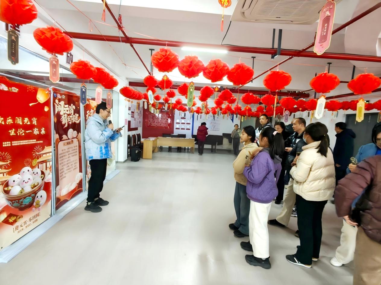 民俗展风采,文化润民心。活动的帷幕由民俗文化展览拉开,本次活动以“时光里的元宵”为主题,用通俗易懂的图文为居民系统地梳理了元宵节千年的历史渊源与多样的传统习俗。活动现场的民俗展区布置得格外精致,精美小巧的兔儿灯与琳琅满目的民俗展品错落陈列,在精巧的图文展板前,志愿者们为居民细细讲述赏灯、猜灯谜、吃汤圆等经典习俗的由来与演变。居民们纷纷驻足观赏,不时扭头交流探讨,在光影与技艺的交融中,重温儿时记忆。大家在沉浸式体验中,深刻领略了中华优秀传统文化的魅力,切实感受到了元宵节浓厚的文化内涵与温暖的社区温情。