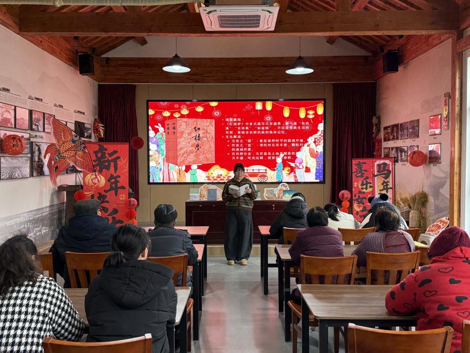 活动在“开卷有福·岁稔共话”环节中拉开序幕。正余镇全民阅读推广人,以“岁时节令里的农耕智慧”为主题,引领在场观众开启了一场穿越时空的文化之旅。讲述人不仅带领大家共赏了《红楼梦》中贾府元宵宴的繁华盛景,品味了辛弃疾《青玉案·元夕》中“蓦然回首”的千古浪漫,更深入解读了元宵节作为初春农耕生产序章的文化内涵。一句句本土农谚的分享,既是对新春的寄语,也揭示了传统节日背后蕴藏的质朴而深邃的农耕智慧,让听众在诗意中触摸到传统文化的根脉。