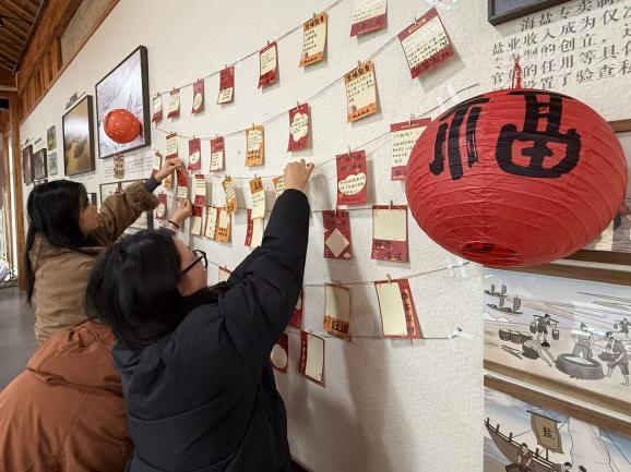 “元宵·微书评”的贴纸墙成为情感交流的温馨角落。正余镇新时代文明实践所精心准备了精美明信片和笔,邀请读完导读卡片或翻阅过相关书籍的游客,或是写下自己关于“团圆”“年味”的感悟,或是推荐一本心中的好书。不一会儿,明信片贴满了留言墙,“月圆人团圆,书香亦醉人。”“故乡是回得去的想念。”“推荐《城南旧事》,有童年的年味。”……一句句真挚朴素的感言汇聚成群众的“百家言”,让个人的阅读体验和情感记忆在灯火下交融,温暖了古街的夜色。