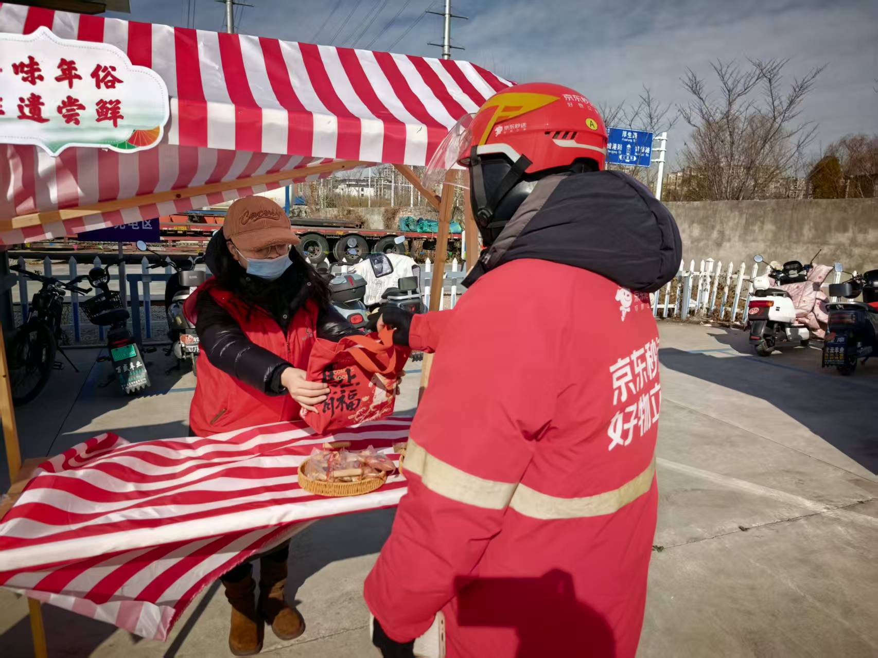 在拓福手工体验环节,非遗传承人现场指导大家拓印福字、生肖年画,大家亲手制作新春文创,在动手体验中感受传统年俗的魅力;墨韵送祝福环节,社区书法爱好者挥毫泼墨,不仅书写吉祥福字,更量身定制“车行万里路,人安四季春”“风里来雨里去,平安归福满门”等专属春联,将贴合新业态从业者日常的美好祝愿凝于笔端;艾灸健康关怀环节,专业中医师现场提供免费艾灸、肩颈理疗服务,细致讲解冬季养生与职业病预防知识,为长期奔波的新业态从业者缓解身体劳损,同时发放车载艾灸包、健康手册,让健康守护一路相伴;在非遗尝鲜环节,天生港草鞋底、脆饼、麻糕等南通特色非遗美食悉数亮相,参与者在品尝地道年味的同时,还收到内含反光贴、保温杯等出行应急物资的新春福袋,为出行安全增添保障;爱心餐饮环节,现场为大家发放“9.9元年夜饭”兑换券,工作人员详细讲解使用规则与合作商户信息,让新业态群体能以实惠的价格享受暖心年夜饭礼包,让团圆滋味更浓郁。