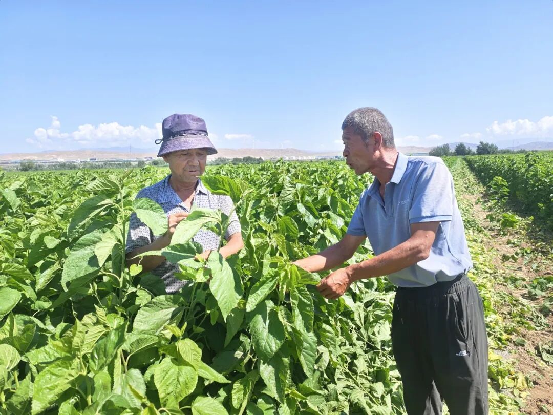 从黄海之滨到天山脚下,一粒小小的桑种,开启了一场跨越山海的产业之旅。2024年5月,伊宁县的桑苗试验田里,新栽的桑苗已纷纷抽出嫩叶。“这片试验田330亩,栽下190万株桑苗,株距20厘米,根深15厘米,每一株都娇贵得很。”新疆天山宝宝生物科技有限公司基地负责人唐仁忠蹲在田间,指尖轻拂叶片,被戈壁烈日与风沙浸染的黝黑面庞,写满了对这片土地的坚守。“我们天天泡在地里,村民都说我们比牧民还能吃苦。”
