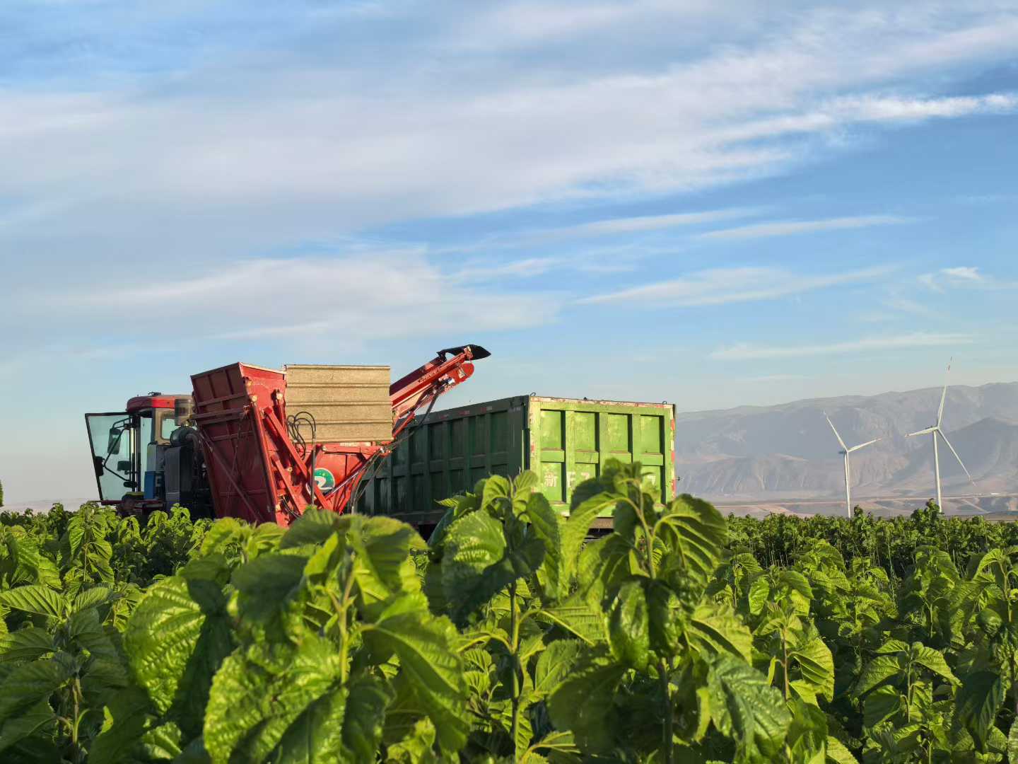 桑种扎根只是起点,食品安全、产业配套的新挑战接踵而至。最初的试验田毗邻果园,无人机喷洒农药时的细微漂移,都可能对蚕宝宝造成致命威胁。为守住桑叶安全底线,团队毅然放弃成熟地块,在南通工作组、伊宁县相关部门的反复勘察下,最终在麻扎乡找到一片无工农业干扰的开阔山坡,3000亩高标准桑园初具规模。机械化移栽、规模化采收,让亩产干桑叶稳定达到1吨,彻底破解了原料供应难题。