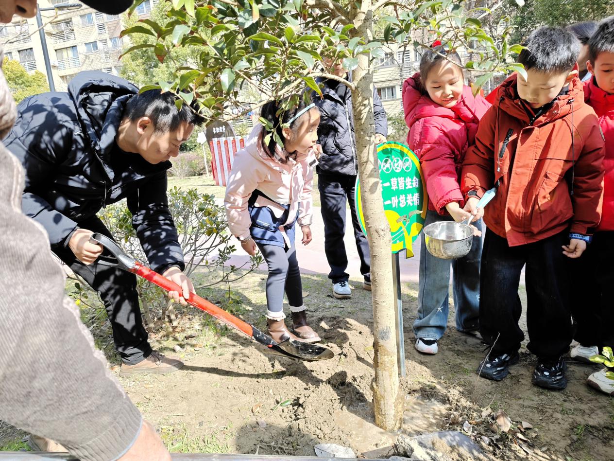 携手植新绿,同心护萌芽。在这春风送暖,绿意渐浓时,世伦桥社区与崇川小学三(1)班联合,集结小区居民、学生及家长春日植树。活动现场,家长与学生分工合作、配合默契,有的细心松土、有的忙着提桶浇水,一株株树苗在欢声笑语中挺立起来,为社区添上新春的蓬勃生机。为了确保树苗的茁壮成长,本次活动还引入家庭责任制,一家认领一株树苗,定期前来浇水、养护。一位民办教师家长感慨道:“这次活动让孩子们在动手实践中感受劳动的乐趣、树立了热爱自然的观念和保护环境的意识,太有意义了”。