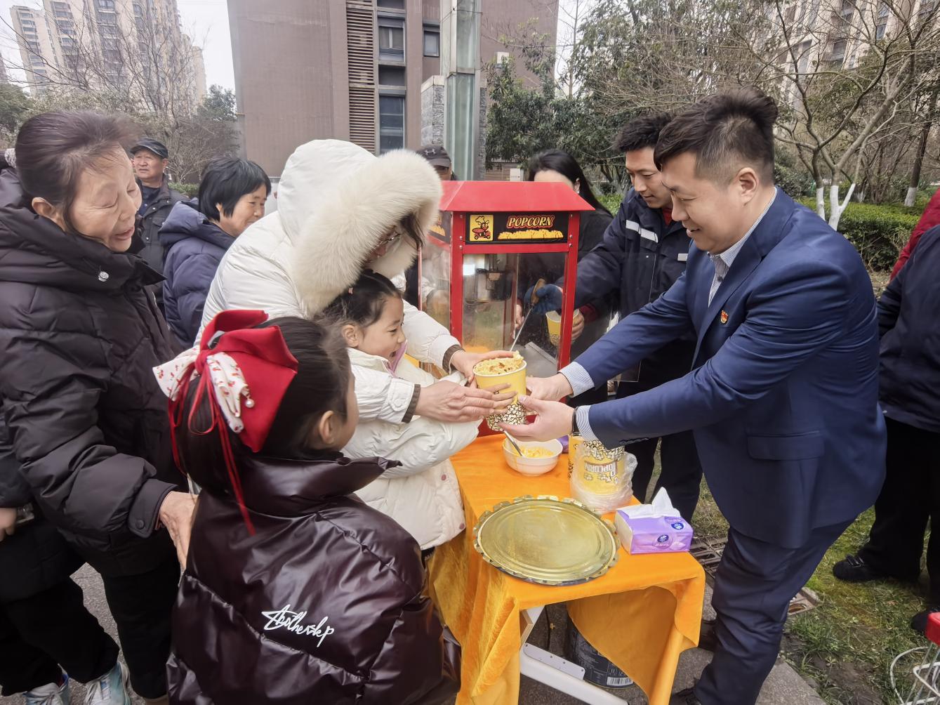 小区广场的志愿服务区同样人气高涨,社区精准对接全年龄段需求,设置免费理发、公益磨刀、便民洗车、趣味爆米花四大服务项目。理发师傅细致修剪、磨刀师傅精心打磨、洗车志愿者分工协作;流动党员物业经理顾子权,亲手为孩子们送上香气四溢的爆米花。志愿者们以专业与热情送服务上门,让雷锋精神在便民实践中落地生根,“学雷锋、树新风”的理念蔚然成风。