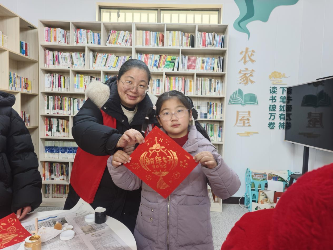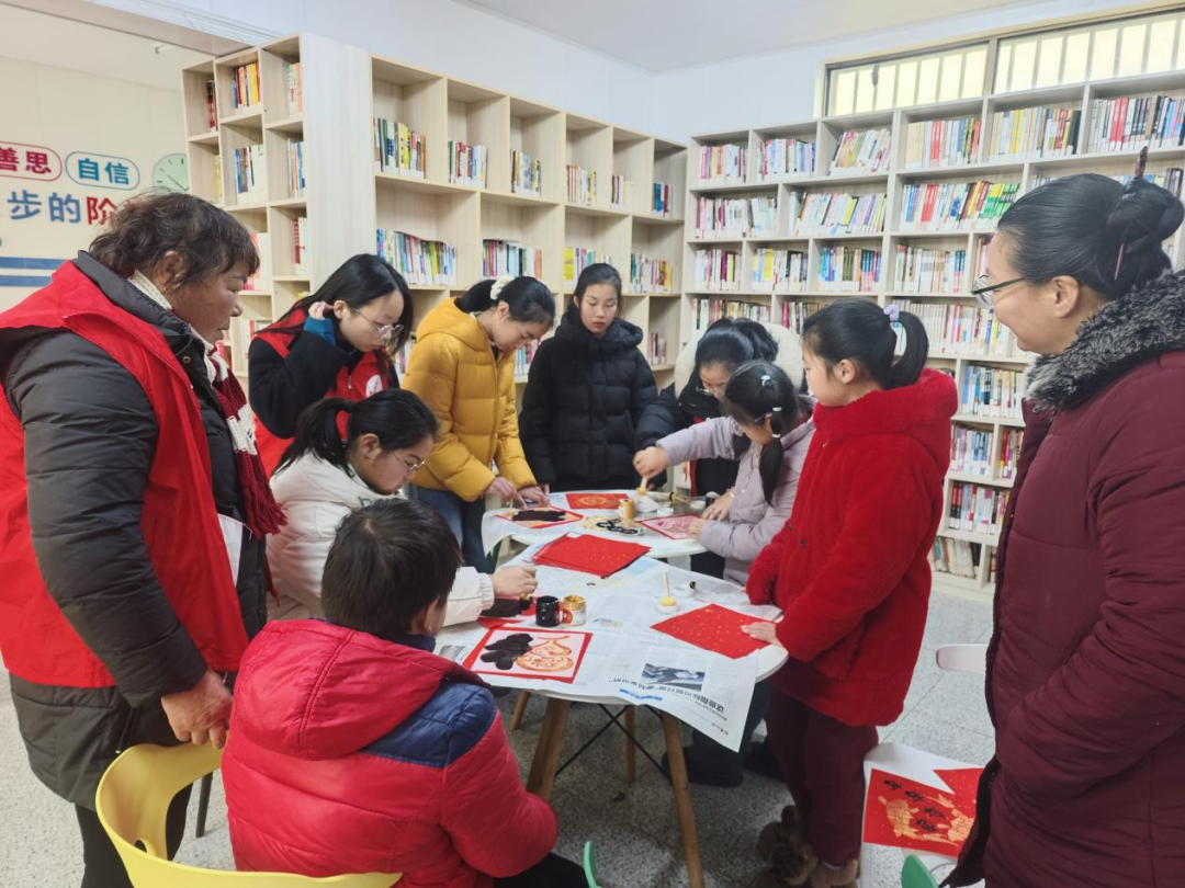 “童手拓福趣体验”环节吸引了村里许多小朋友踊跃参与。在志愿者细心指导下,孩子们亲手铺纸、蘸墨、拓印,完成了一个个别具童趣的“福”字作品。活动现场笑声不断,孩子们在实践中既体验到传统手工的乐趣,也感受到中华年俗文化的独特魅力。