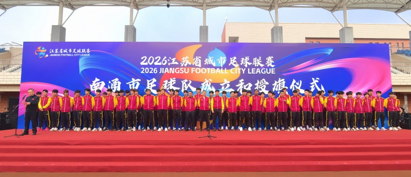 中国江苏网讯 3月13日上午,2026年江苏省城市足球联赛南通队成立和授旗仪式在南通市体育运动学校举行。这支以城市之名组建的球队,由金都根担任主教练,李贤成担任球队队长、陈正担任副队长。