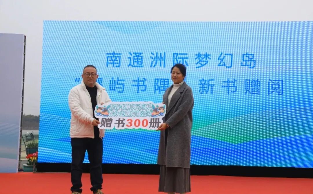 在全场瞩目中,五接镇全民阅读品牌“吾接书脉 阅动江岛”正式发布,并推出一系列贯穿四季的精彩活动。现场嘉宾共同按下手印,见证这一阅读文化品牌的启航。随后,五接镇党委副书记、镇长张雪兵为南通洲际梦幻岛“樱屿书隅”图书角揭牌,通州区政协委员盛玲芝现场向景区赠阅新书。阅读空间从室内延伸至花海,既是对“诗与远方”的生动诠释,又是五接镇深化“阅读+文旅”融合的创新落笔。