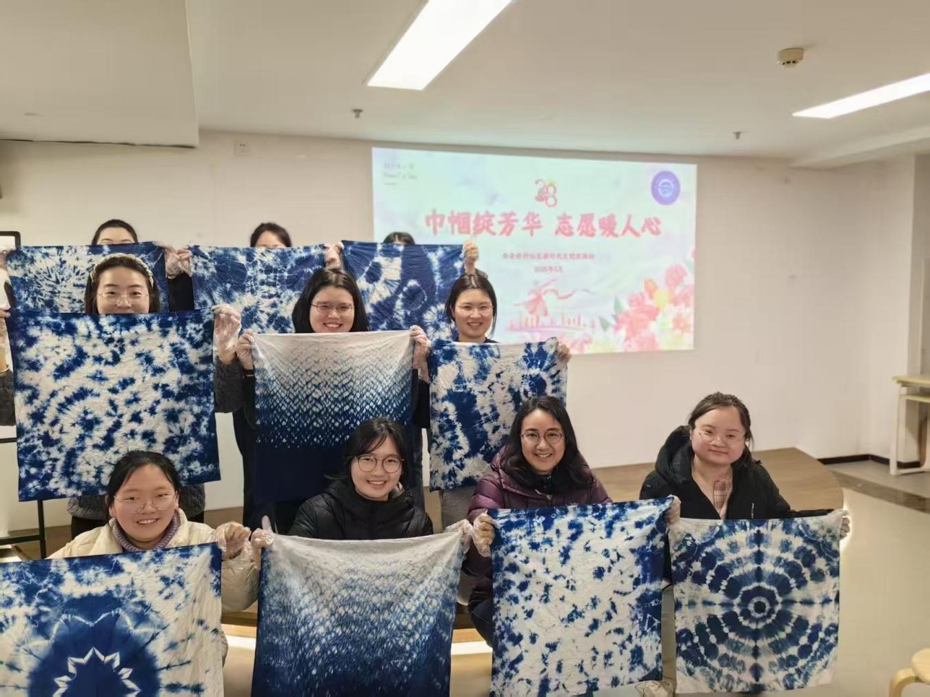 一折一扎间尽显巧思,一浸一染中传承文化。扎染古称“绞缬”,是中国民间传统而独特的染色工艺,核心魅力在于“不确定性”,它以棉、麻、丝等天然织物为载体,用棉线、麻绳等将布料捆扎、折叠、缠绕,再浸入天然染料中染色。活动特邀扎染老师现场授课,带领大家沉浸式感受非遗魅力。在老师的带领下,大家坐在一起,从布料挑选、折叠捆扎,到浸染上色、晾晒固色,将素布变成独一无二的蓝白佳作。“没想到不同的捆扎方式,能染出完全不一样的图案,非遗真的太有魅力了!”街道新联会成员韩超拿着自己的作品,满脸欣喜地分享道。