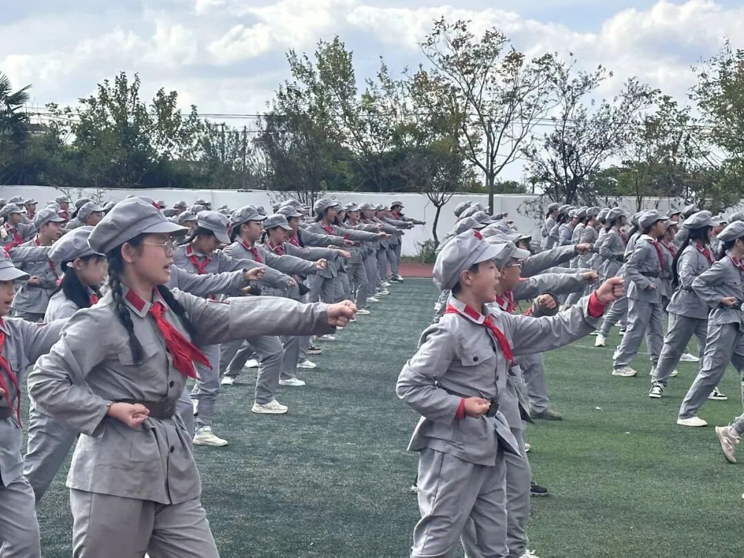 学校深挖红色文化内涵,创编特色红军小学军体操,将队列礼仪、红色精神与体能锻炼有机融合。整齐划一的动作、铿锵有力的口号,既锻炼学生肢体协调性与核心力量,又厚植爱国情怀与集体意识。每日晨练与展演,让红色基因在律动中传承,让坚毅品格在锻炼中塑造,实现“以体育人、以红润心”的育人目标。