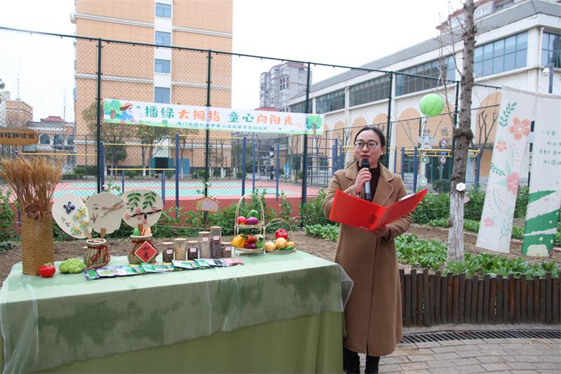 学生代表四(1)班江羽萌表达了对种植活动的期待,家长志愿者王梓墨妈妈也表示会全力配合学校,与孩子共同成长。随后,姜浩校长宣布第二届“花草节”正式启动,现场掌声热烈。