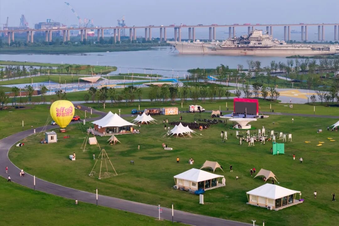 OFF-CITY野营度假公园坐落于南通苏锡通园区滨江绿带,坐拥苏通大桥景观,是长三角首个“人宠共生”自然疗愈基地。公园以打破城市边界、重塑人与自然联结为理念,集露营体验、宠物友好与生态教育于一体,设有4万㎡综合露营区及2万㎡人宠共享营地,提供全配套露营、萌宠设施与多元户外活动,打造沉浸式自然度假空间。