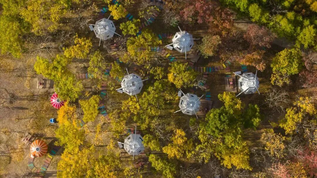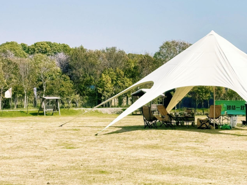 基地拥有多种风格露营区域,涵盖新中式国风小院、户外草坪露营、北欧ins印第安木制帐篷区、浪漫星空玻璃房等,配有独栋公共休闲区域,可体验各类桌游项目。