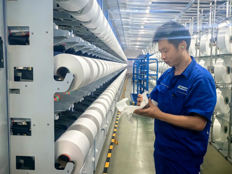 活动首站来到恒力(南通)纺织新材料产业园,这里是世界500强企业恒力集团在南通设立的新材料产业基地。走进园区江苏恒科新材料有限公司的生产车间,智能化设备高速运转,数字化系统精准调控,现代化绿色工业图景令人惊叹。恒力集团积极响应制造强国号召,紧扣国家“十五五”规划部署,以智能化、绿色化、融合化为方向。其化纤智能化车间采用国内首套全流程数字化智能纺丝装备,通过互联网、物联网技术实现设备与质量数据的实时监控与远程监测,机器人与自动流水线协同作业,辅以人工巡视,高效完成生产。纺织智能化车间则升级设备并强化物联网数据采集与边缘计算能力,依托“恒力纺织大数据”平台实现生产全流程可视化管理,提升运营效率。该公司通过自动化、工业化、信息化、数字化的深度融合,大幅提升了产品品质与运营效率,构建起化纤行业智能化生产的全新格局,还荣获了“国家高新技术企业”等多项荣誉。