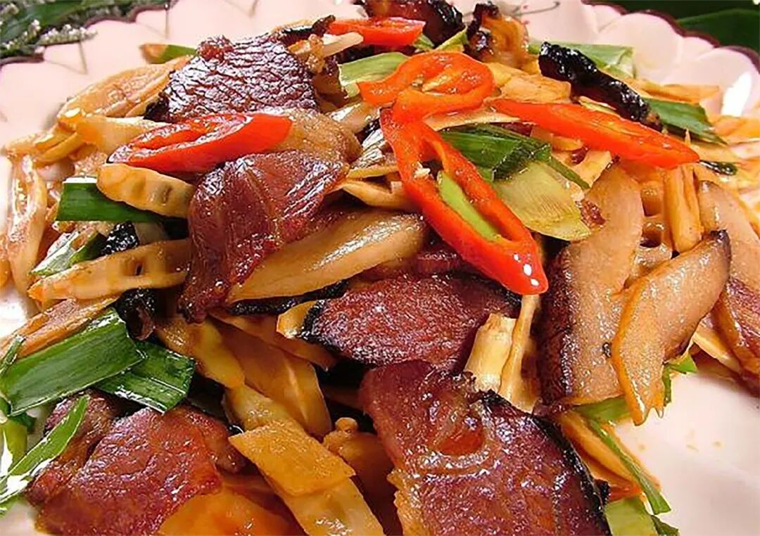 春笋炒腊肉是春季传统佳肴,春笋鲜嫩,腊肉咸香,二者结合,体现了食材的时令之美。它代表着人们对自然恩赐的珍视和对传统美食文化的传承,是春日餐桌上的一道亮丽风景。
