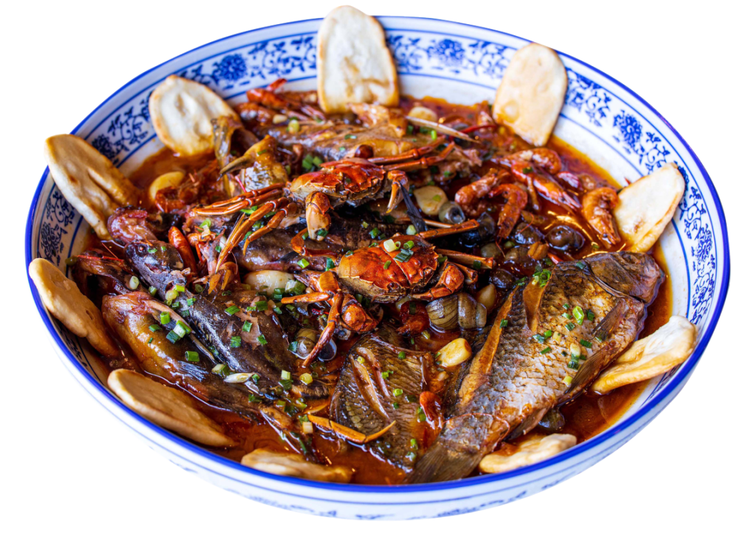 里下河杂鱼主要食材就是鲫鱼、昂刺鱼、河虾、螺蛳等河鲜,选用当天现杀的新鲜活鱼,热油下锅,刚刚拾掇好的鱼放进锅里后,居然还“活蹦乱跳”,加入冬笋片、姜片、蒜粒,然后是料酒、老抽、生抽等各种调料,盖上锅盖焖上一会,加入河虾、螺蛳。最后出锅前,撒上葱花、小红椒、姜末,再淋上少许热油,鱼肉细嫩、汤汁鲜美。