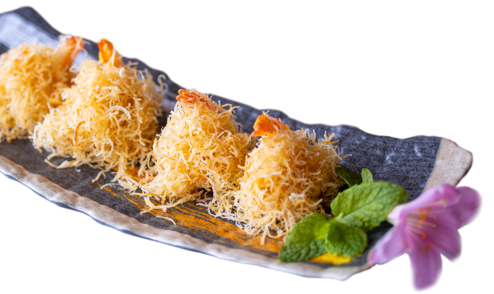 精选鲜虾去虾头虾壳挑去虾线,在虾肉头的位置开口,把虾尾巴穿过开口,成虾球状,用少许盐和料酒腌制一会儿,整只虾仁裹着厚厚的土豆丝过油一炸,一道寓意喜庆吉祥的金丝虾球就出锅啦,看着毛茸茸的金黄色小球,炸得外表金黄,内里酥香爽口,咬在嘴里却是别样的感觉,具有开胃、清香等特点。