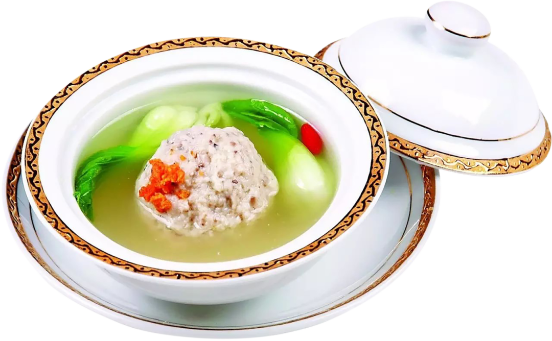 采用清炖之法来炮制青菜蟹黄狮子头,吃起来肥而不腻,且色泽美观,蟹黄鲜香,营养丰富。
