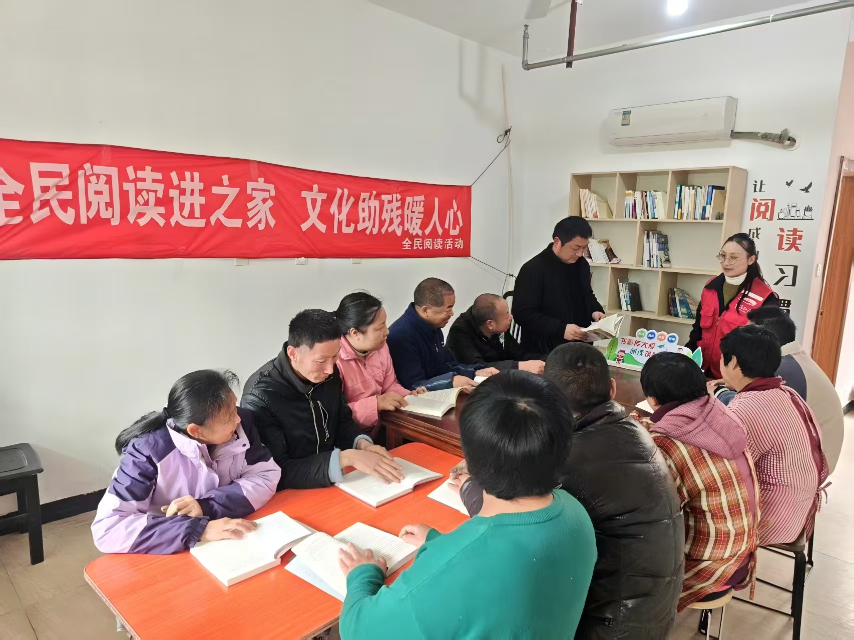 活动现场,志愿者率先开展领读分享,以经典励志书籍为切入点,结合全民阅读的时代价值,用通俗易懂的语言分享阅读感悟。考虑到残疾人朋友的身体特点与阅读需求,志愿者放慢讲解节奏、耐心细致引导,提供一对一帮扶服务,有效消除了阅读壁垒,让参与者沉浸式感受文字的魅力,现场氛围温馨融洽。