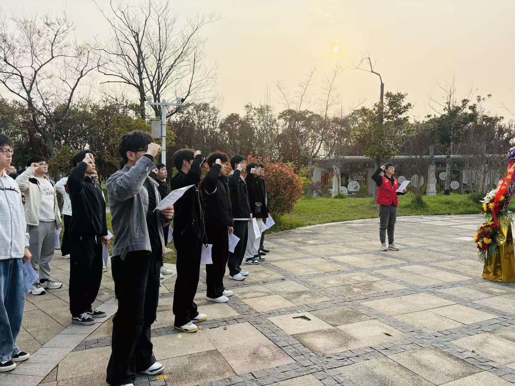 祭扫仪式上,南通理工学院团委的团员和学生代表,饱含深情地朗诵了由崇川区天生港镇街道“阅读使者”——牧童创作的诗歌《致敬,革命先烈》。学生们激昂而真挚的朗诵声回荡在广场上空,字字句句都承载着对革命先烈的崇高敬意。
