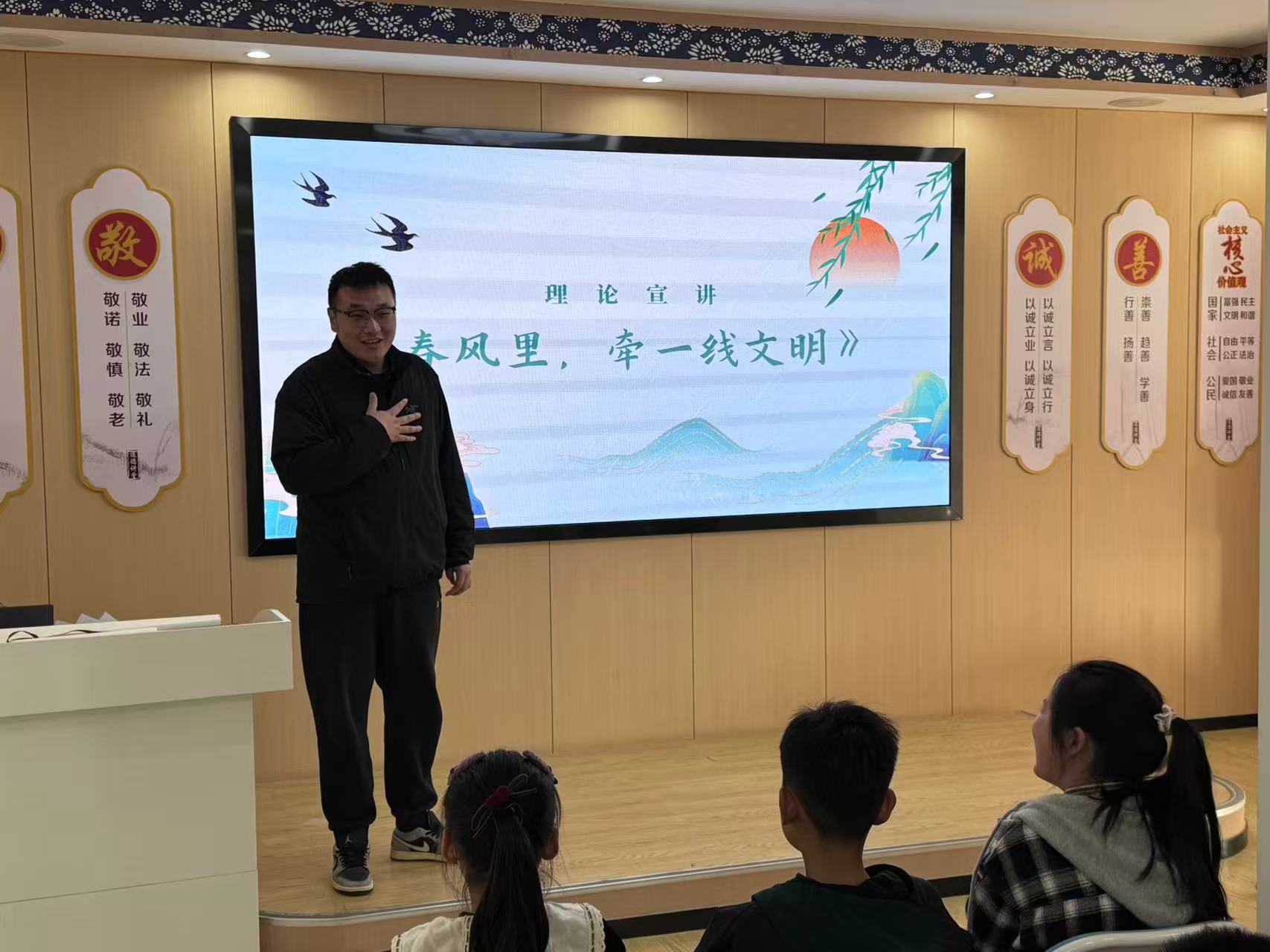 “以前有人放风筝‘放晦气’,现在你们还这样做吗?”宣讲员以一只风筝为引,开启《春风里,牵一线文明》的微宣讲。通过对比烧纸钱、放鞭炮与献鲜花、网络追思等新旧习俗,引导孩子们理解:心意未变,表达方式可以更文明。宣讲还将移风易俗延伸至日常生活,鼓励孩子们争当“小小移风易俗宣传员”。