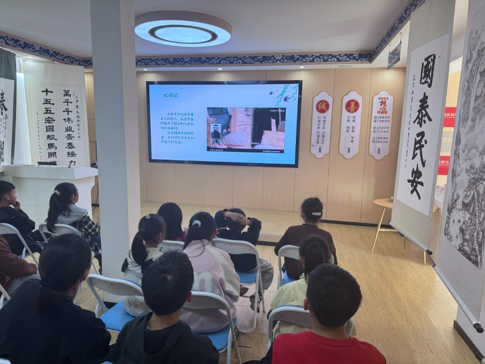 清明节同样是缅怀英烈的时刻。现场播放了短片《英雄真正的离去,是被所有人遗忘》。短短三分钟的视频,让在场孩子深受触动。主持人引导大家思考“英雄是什么?”“我们该如何铭记?”,孩子们踊跃发言,表达对英雄的崇敬与传承之志。