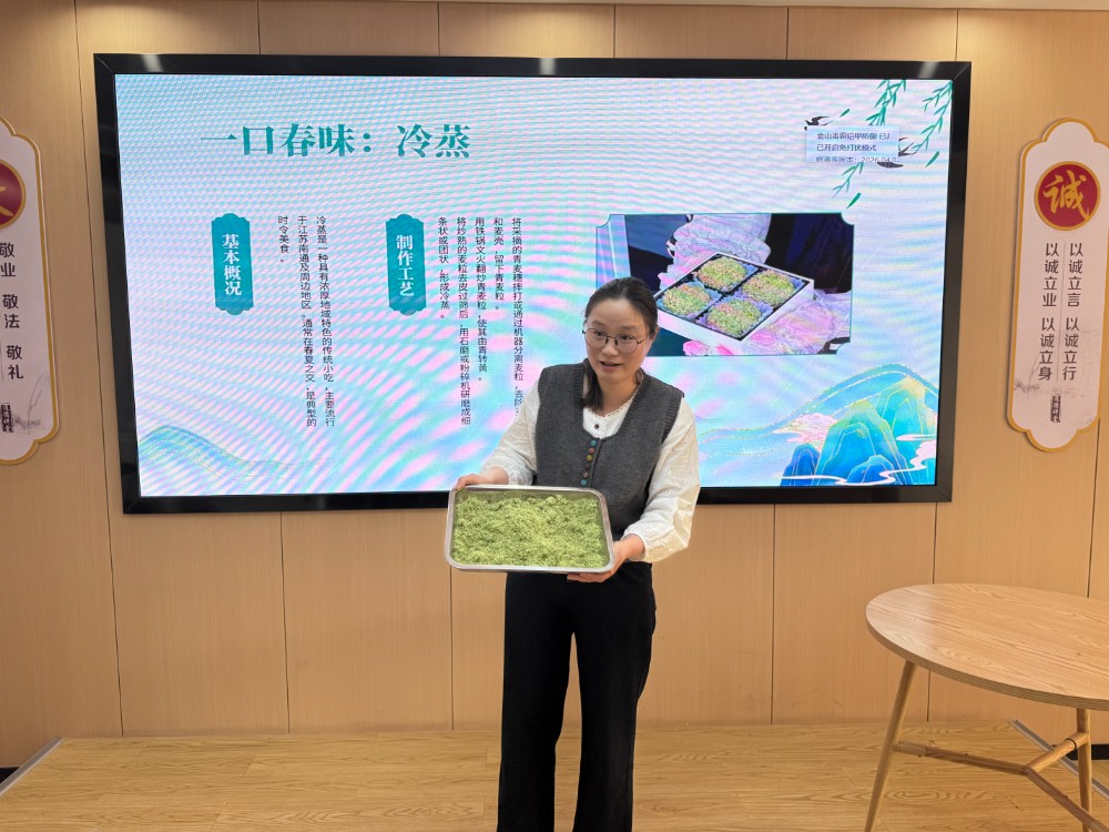活动从认识本地时令小吃“冷蒸”开始。通过科普视频和现场讲解,孩子们了解到,冷蒸曾是旧时青黄不接之际的“救急粮”,承载着先辈勤俭节约、珍惜粮食的传统。在志愿者指导下,孩子们亲手制作并品尝了这份春日的独特滋味,从舌尖上感知农耕文明与勤俭家风。