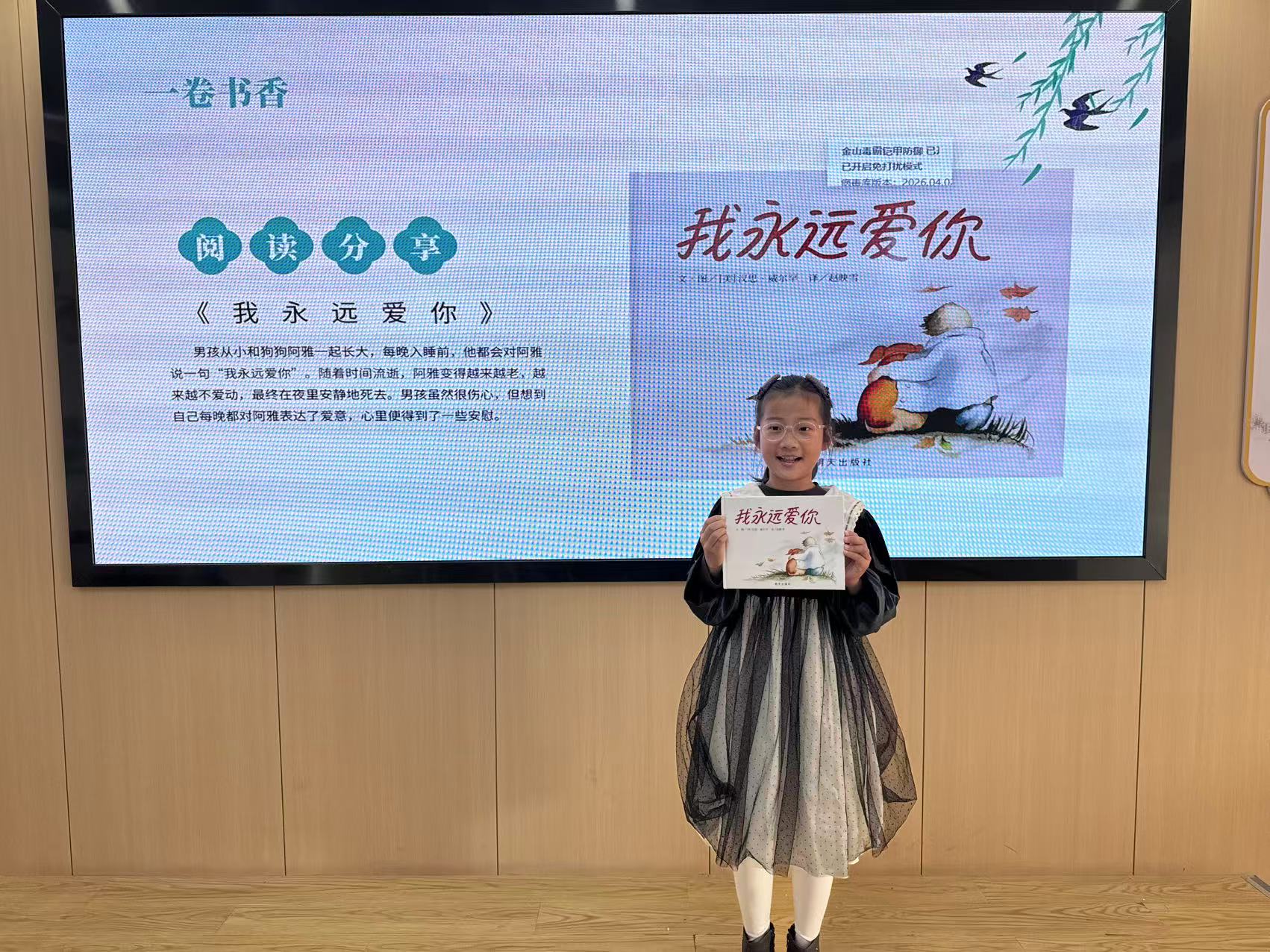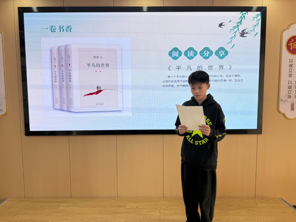 在阅读分享环节,两名孩子分别分享了绘本《我永远爱你》和小说《平凡的世界》的阅读体会。前者以温暖故事讲述爱与告别,引导珍惜身边亲人;后者以平凡人的奋斗历程传递坚持与力量。分享虽简短,却在孩子们心中播下了感恩、奋斗与家国情怀的种子。