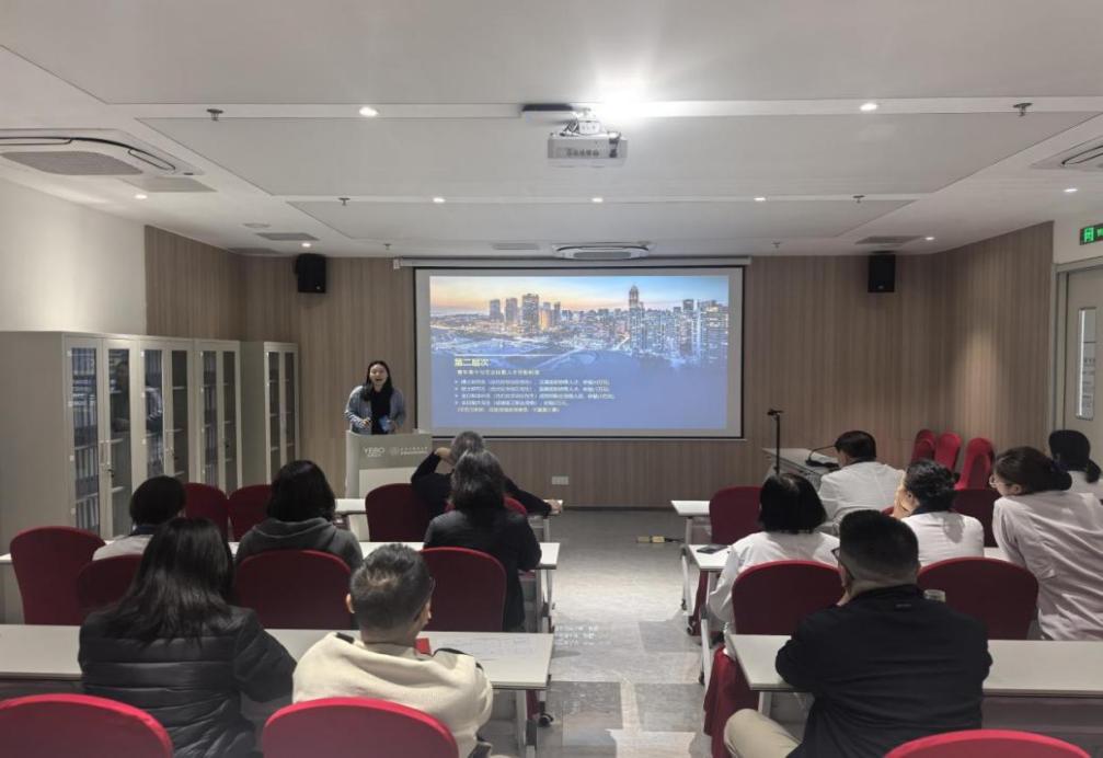 宣讲现场,“青骑兵”宣讲员紧扣“潮涌江海 智汇通城”的主题,结合街道人才工作实际,用通俗直白的语言简明阐释人才房票的核心内涵,让在场人员快速理解政策本质。宣讲过程中,宣讲员重点解读了政策“扩围、提标、叠加”三大突出亮点,清晰告知人才受益群体的延伸范围、各类人才对应的补贴标准,以及可享受的多重叠加优惠,确保每一位在场人员都能清晰知晓自身可享受的政策红利。同时,结合南通医博肛肠医院的人才结构特点,宣讲员精准聚焦医院人才普遍关切的学历职称就高认定、社保缴纳年限要求等核心问题,进行针对性拆解讲解,现场解答人才疑问,确保政策讲解贴合企业实际、贴合人才需求,通俗易懂、入脑入心。