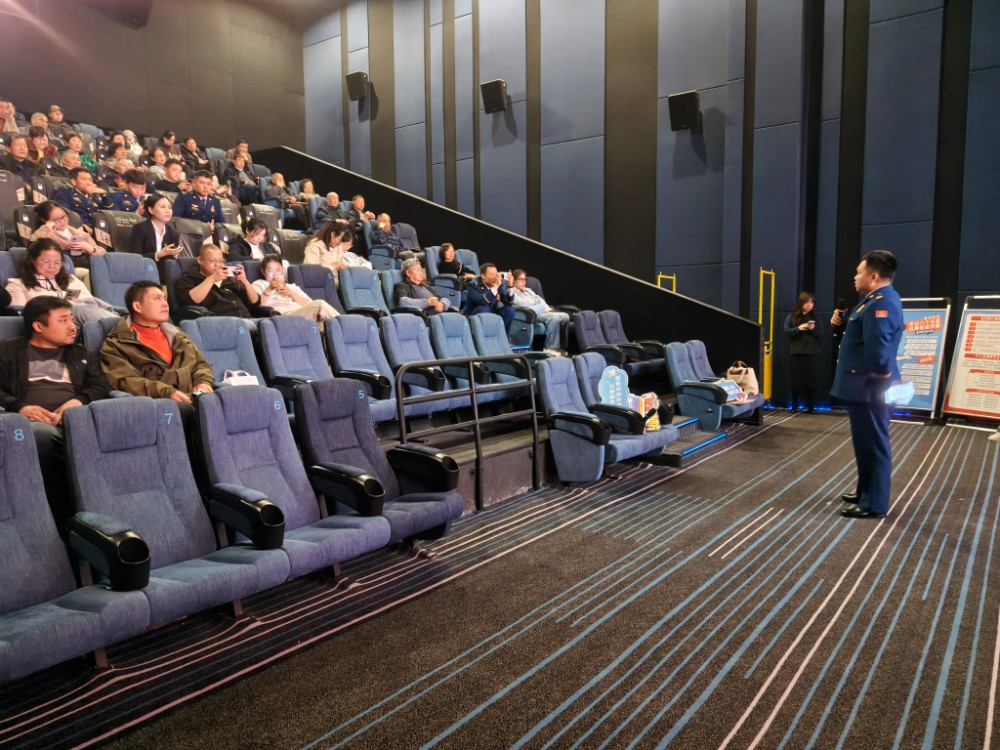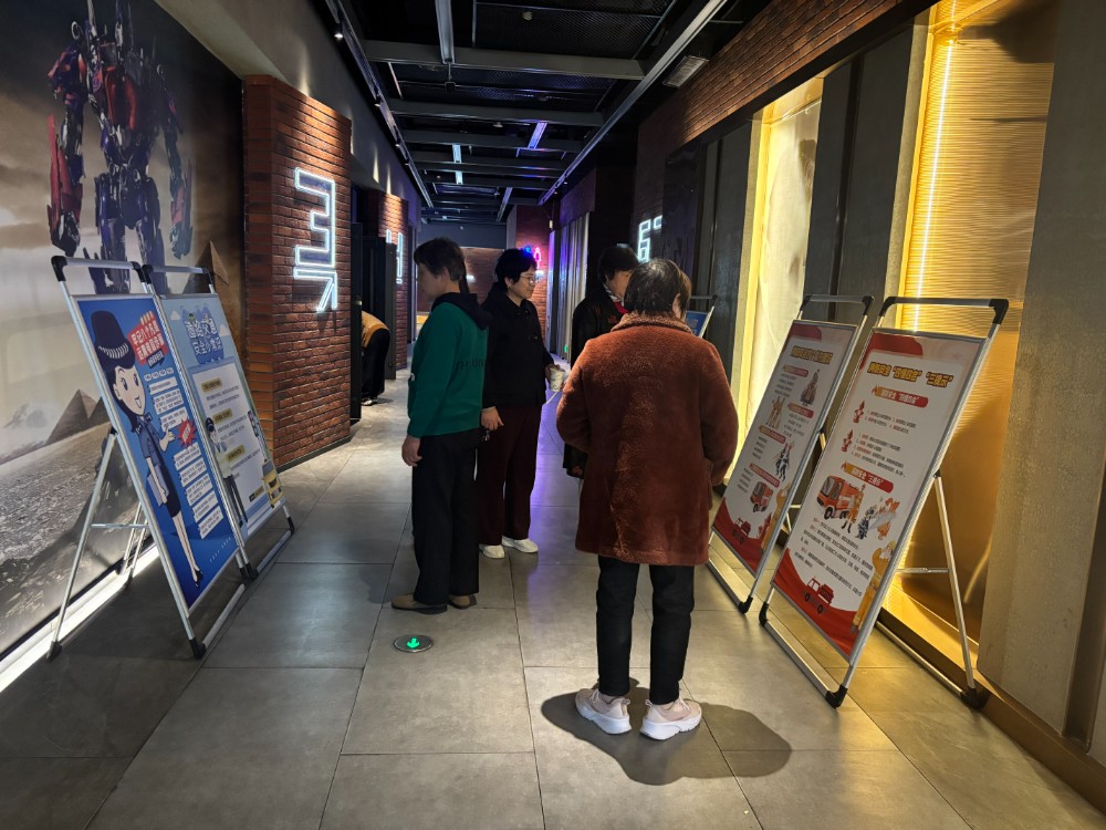 展板研学强认知,安全常识记心间。为进一步深化学习效果,社区在影城周边布置多个安全科普展区,让安全知识入脑入心。此次科普展板内容丰富、图文并茂、案例鲜活,既有安全知识要点解读,也有典型案例剖析,直观易懂、贴近生活,便于群众快速学习和掌握。在消防安全板块,社区志愿者仔细讲解消防安全“四懂四会”“三提示”等内容,进一步巩固了讲座和观影中学到的安全知识,国胜社区党员陈梓英表示:“此次科普讲座内容贴合生活,学习了消防、反诈、交通等实用安全知识,也进一步增强了作为党员守护家园、守护群众的责任与担当。”