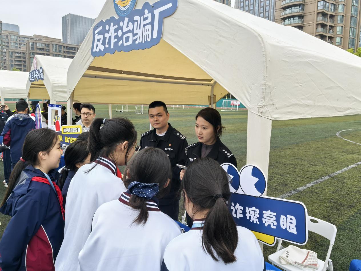 现场同步开展了“江海红帆・平安守护”国安集市沉浸式互动体验活动。本次国安集市精准贴合青少年认知特点,设置了八大特色互动展区:公安政务集市一站式解读户政、出入境等便民服务,反诈治骗厂以互动游戏普及反诈知识,特警装备体验馆零距离展示巡特警硬核装备,平安交通守护站宣讲交通安全法规,全民国安趣学馆打造趣味国安小课堂,国安知识大转盘解读《中华人民共和国国家安全法》《中华人民共和国反间谍法》核心内容,“警界”汪汪队展区更是让师生们近距离了解警犬工作技能,掀起现场互动热潮。各展区通过展板讲解、游戏互动、实物展示、现场答疑等多种形式,把国家安全知识转化为生动鲜活的互动体验,让师生们在沉浸式参与中提升国家安全意识与风险防范能力。