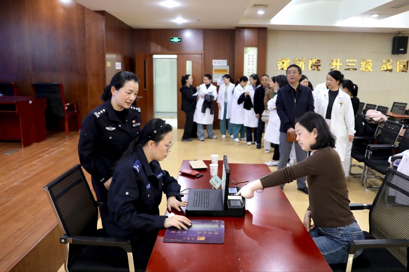 由于工作繁忙、值班值守,南通市通州区中医院的许多医护人员一直抽不出时间前往办证点办理身份证换领、补领业务。通州户政管理中队主动转变服务理念,组织人员携带便携式身份证办理设备,走进通州区中医院,开展了首场居民身份证上门集中换领服务。