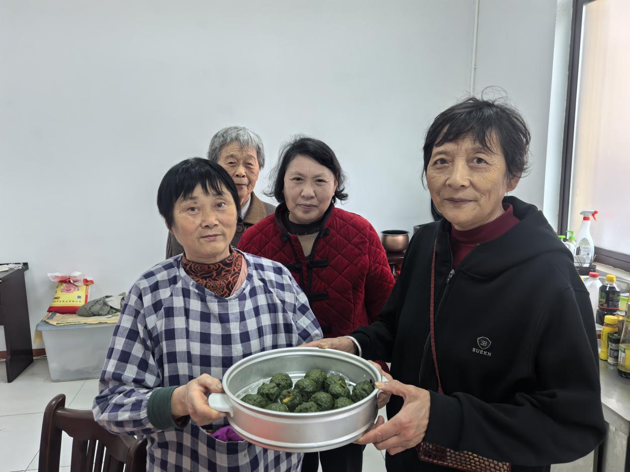 随后在活动现场,工作人员提前备好艾草汁、糯米粉、豆沙等食材,耐心讲解青团的制作技巧。大家围坐在一起,揉面、包馅、搓圆。指尖翻飞间,一个个翠绿饱满、软糯香甜的青团陆续成型,既体验了手工制作的乐趣,也感受了传统民俗的魅力。