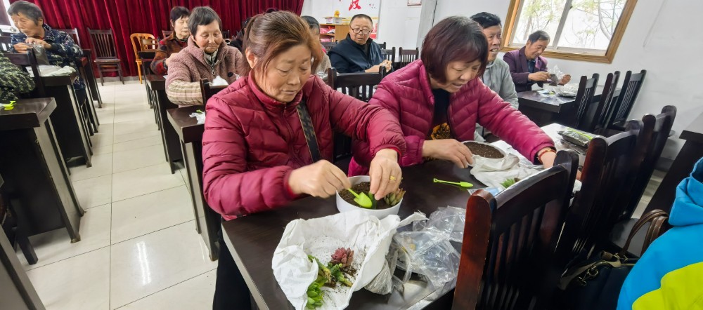 “多肉耐旱怕涝,浇水一定要遵循‘见干见湿’的原则,宁干勿湿。”志愿者手持多肉幼苗,结合实物细致讲解养护知识,从多肉的生长习性、浇水频率、光照要求,到土壤配比的技巧,逐一拆解说明。随后,居民们挑选幼苗、配土栽种,最后小心翼翼地摆放铺面石,在亲手培育中感受生命扎根生长的蓬勃活力。一盆盆形态各异、憨态可掬的多肉盆栽,将成为居家环境中的一抹“小生机”,它们不仅装点环境,更在日复一日观察与陪伴中,悄然传递着绿色养护、轻松生活的“大环保”理念。