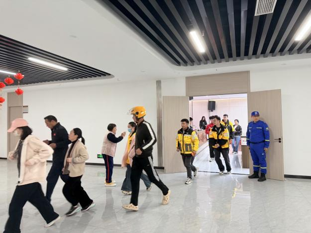 讲解结束后,地震应急演练正式开启。在曹队的指挥下,居民和外卖小哥们迅速按照逃生规范,沿着预定疏散路线有序撤离。撤离至安全区域后,曹队仔细检查大家逃生动作的规范性,纠正不足,并讲解地震后的自救互救要点,确保大家真正掌握地震应急技能。