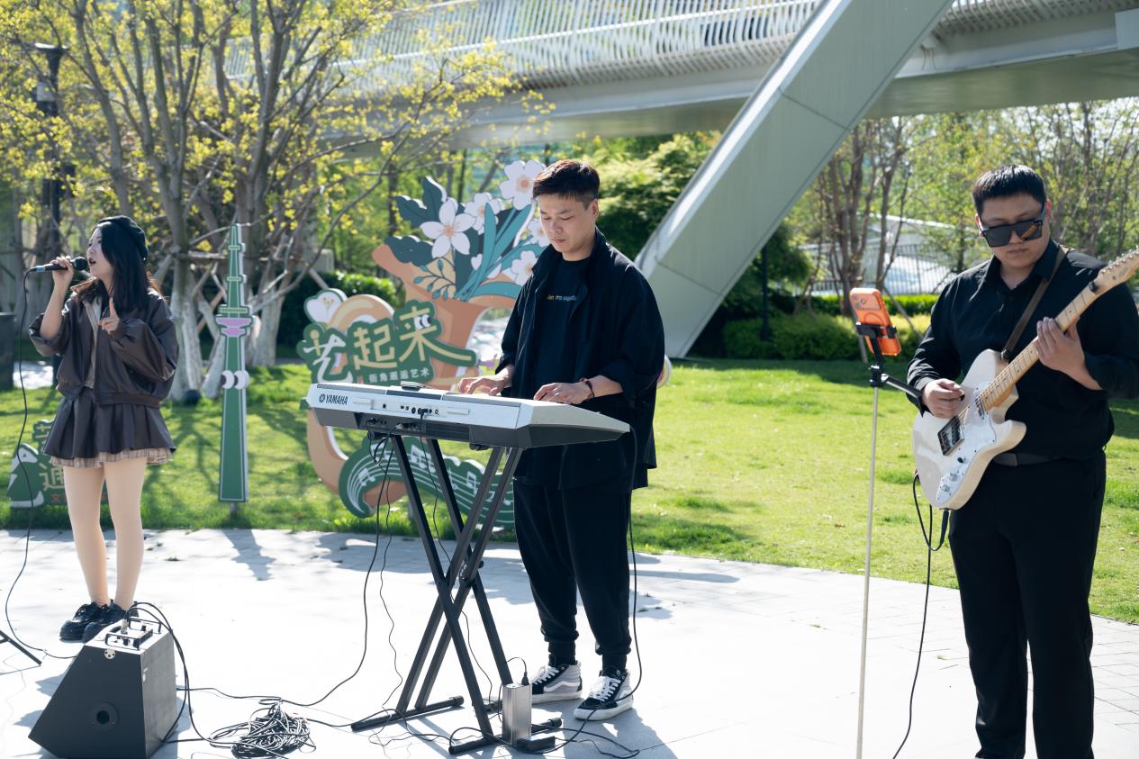 中国江苏网讯 4月18日下午,由南通市崇川区狼山镇街道主办的“街角邂逅艺术”主题快闪演出在南通体育公园温情上演。本次活动将高品质的文艺演出从传统剧场延伸至公共空间,邀请本地D调乐队为市民带来了一场氛围轻松、曲目丰富的露天音乐会,让艺术之花在春日街头悄然绽放。
